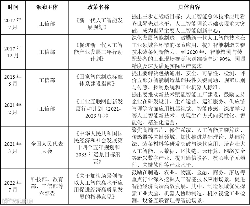 工信部等部门高度重视人工智能及相关产业的发展,先后出台多项政策,从提升产业链竞争力、发展计算机视觉底层技术、挖掘应用场景等方向促进我国计算机视觉产业的发展。