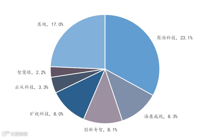我国计算机视觉行业市场集中度较高,头部企业突出,已逐渐占据主要市场份额。根据国际数据公司(IDC)发布的《中国人工智能软件2022年市场份额》,商汤科技以23.1%的市场份额位居第一,其后依次为海康威视、创新奇智 、旷视科技、云从科技、智慧眼等。
