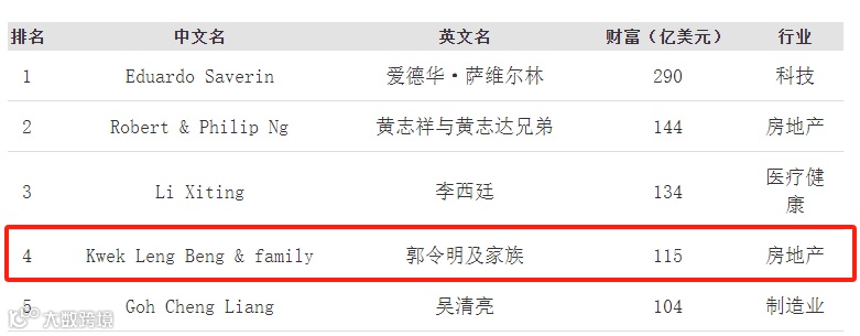 随着老郭的一次次商业运作,其在资产上也达到了父亲从未有过的高度,好几次问鼎新加坡首富宝座。在最新的2024年福布斯新加坡富豪榜上,郭令明及家族上榜身家达115亿美元,为新加坡第四大富豪。