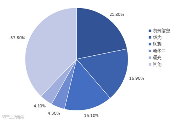 根据IDC的统计数据,2022年中国服务器市场规模约为273亿美元,浪潮信息在中国服务器中市场份额最高,市场份额为28.10%;华为和联想次之,市场份额分别为16.90%和15.10%。中国服务器市场前五大厂商市场份额合计为62.20%,市场集中度较高。