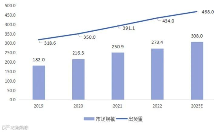图表 2 2019-2023年中国服务器出货量及市场规模变化