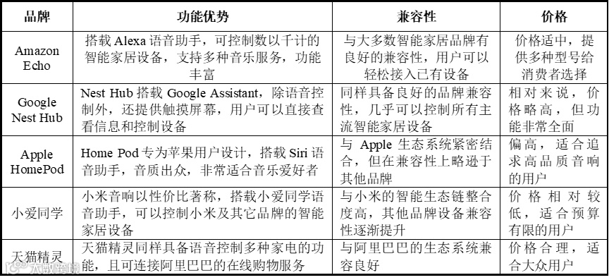 图表 8 不同品牌智能家居语音控制系统对比