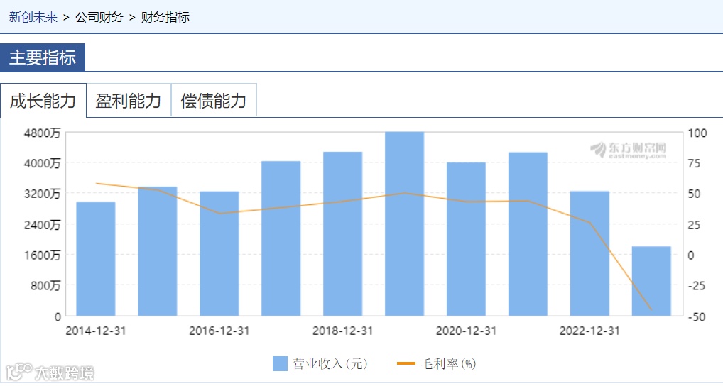 新创未来历年营收情况 来源:东方财富网