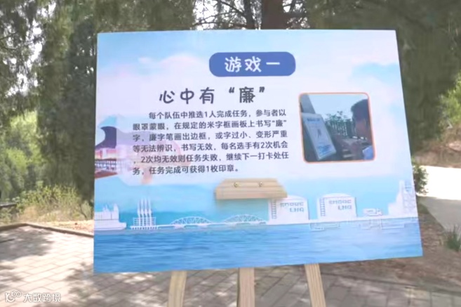 打卡点设置携手传“廉”活动,大家相互协作将印有“廉”字的乒乓球通过球拍一个个传递到廉洁小杯内,获得打卡任务印章。