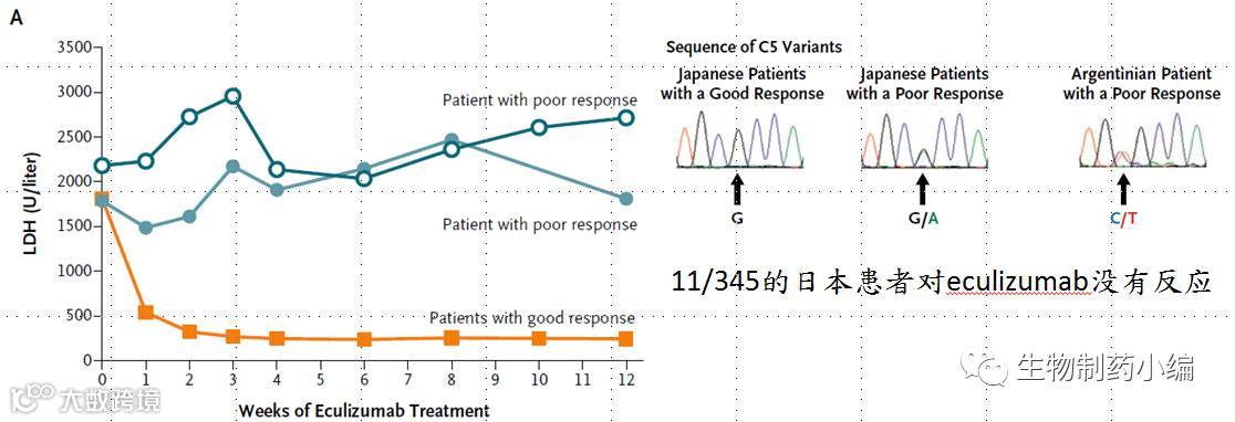 再说下Eculizumab的弱点,其中最主要的就是耐药性的出现,日本的研究发现3.5%的病人对Eculizumab没有反应,测序发现这些患者的C5出现了突变。这也“催生”了两个新的赛道选手:Alexion的ALXN-1210和Akari的Coversin。