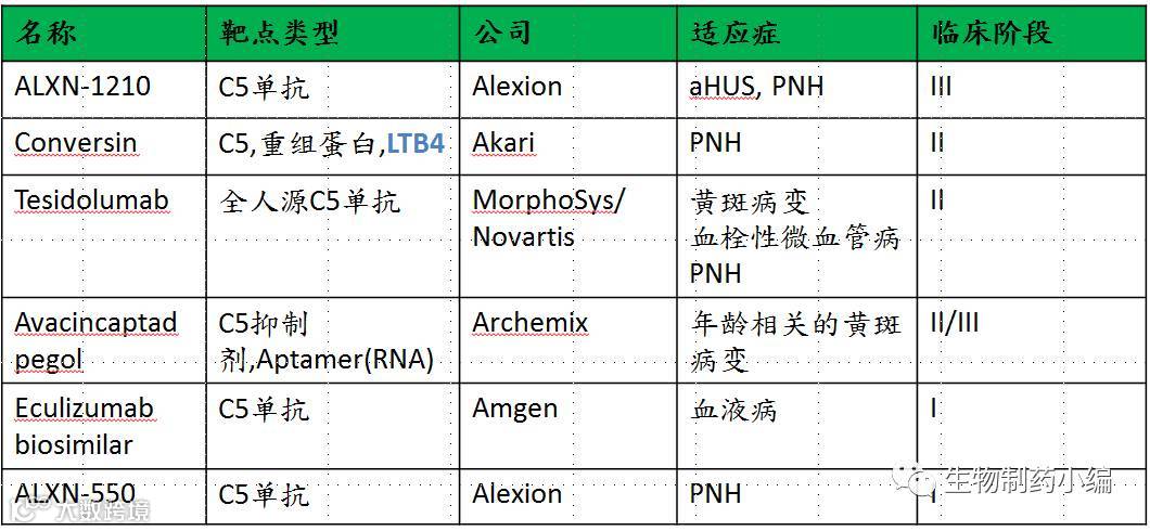 小结:不论Coversin和ALXN-1210谁输谁赢,Amgen的Biosimilar正在身后紧紧追赶,这势必会压低Eculizumab在PNH领域的价格,除此之外,还有其他补体系统抑制剂的“夺命连环追”这样的行业竞争对患者来说是有利的。
