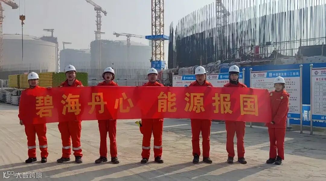 在我国规模最大的LNG储备基地建设现场,江苏LNG员工代表们挥舞着手中的旗帜标语,共同祝福中国海油40岁生日快乐,他们坚守建设一线,用高质量建造表现,向中国海油献上生日贺礼!