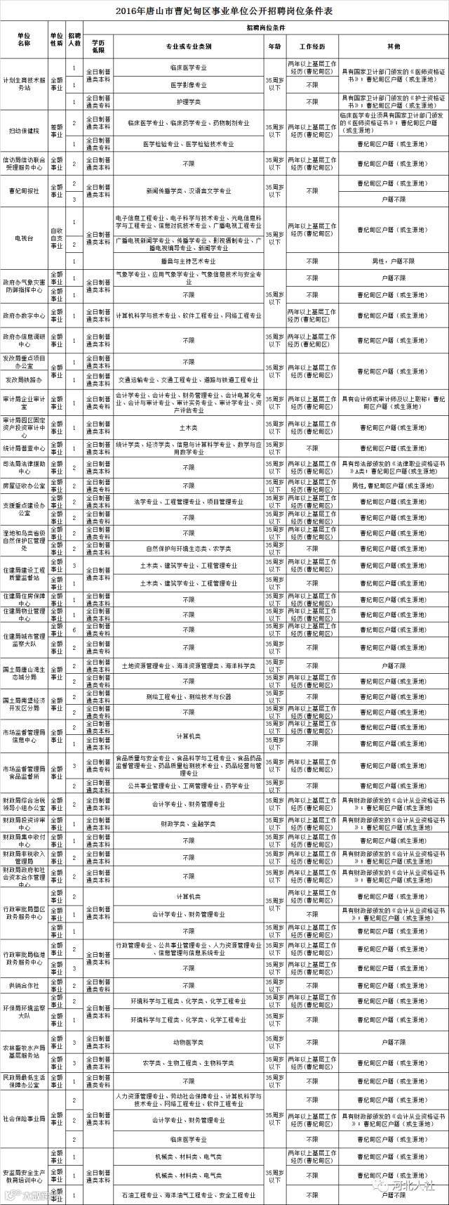 经唐山市曹妃甸区委、区政府研究,决定面向社会公开招聘事业编制工作人员106名,具体招聘人数和岗位条件详见《2016年唐山市曹妃甸区事业单位公开招聘岗位条件表》(点击查看大图)