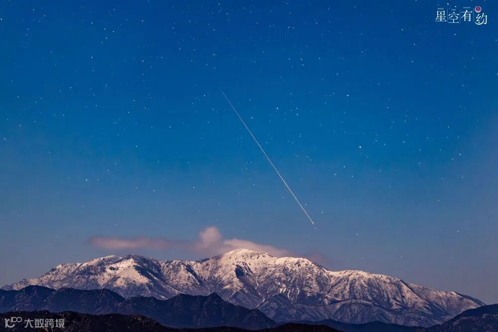 2024年12月14日,在北京市门头沟区百花山自然风景区拍摄的双子座流星雨。(钟奕 摄,图源:新华社)