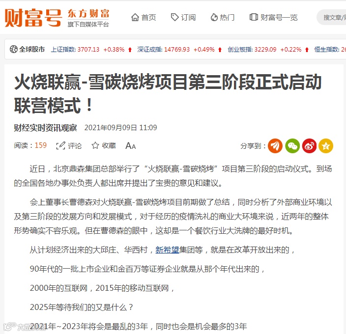 新浪财经头条、东方财富网、中创网等财经媒体全方位播报了相关资讯,整体的报道了雪碳烧烤·千店连锁的经营状况以及餐饮行业的行业前景。可以说疫情过后,全面复苏的餐饮行业,一定是未来三年赛道发展的黑马,而从整个餐饮行业的体量来看,雪碳烧烤的千店连锁计划,未来的市场价值不可估量!而能否抓住线下实体复苏的机会,实现个人财富自由,一定要挑选对的行业和具有价值前景的项目。