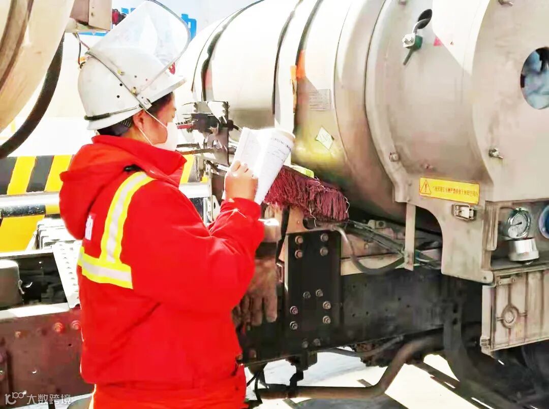 工欲善其事,必先利其器。随着各站点销量增加,加气站负荷逐步达到90%以上,员工劳动强度持续增加,单日加注最高达300车次。老式手动枪要用力推、拉手柄,操作费时、费力,且存在加注泄漏风险,为解决这一问题,公司全部升级气动枪加注,在保障安全供气、降低劳动强度的同时,还提高了生产效率。此外,根据槽车轮胎尺寸设计制作的“手推式阻车器”,克服了普通阻车器重且阻滑效果不佳等缺陷,不仅提高了生产效率,还提升了安全系数。
