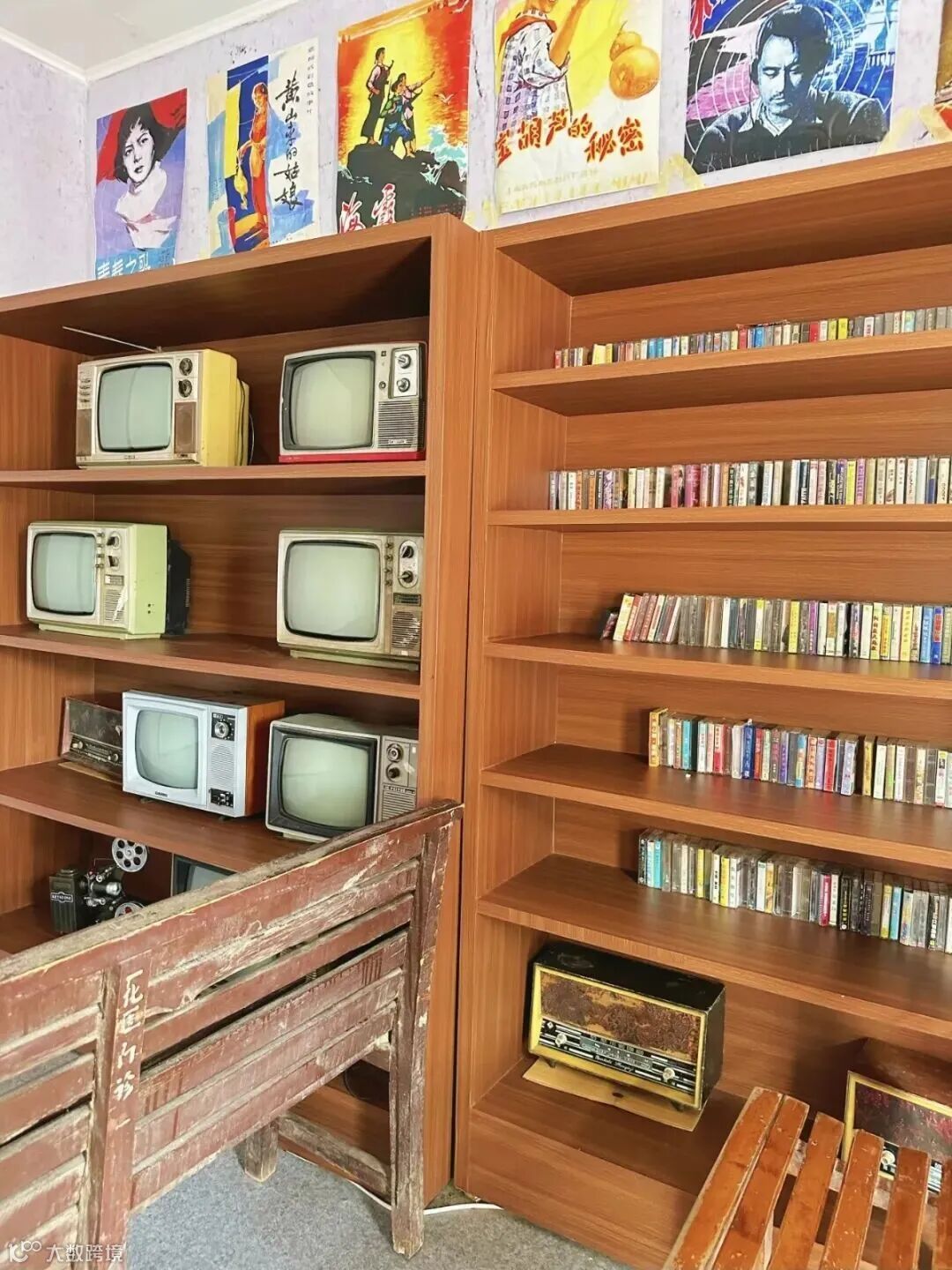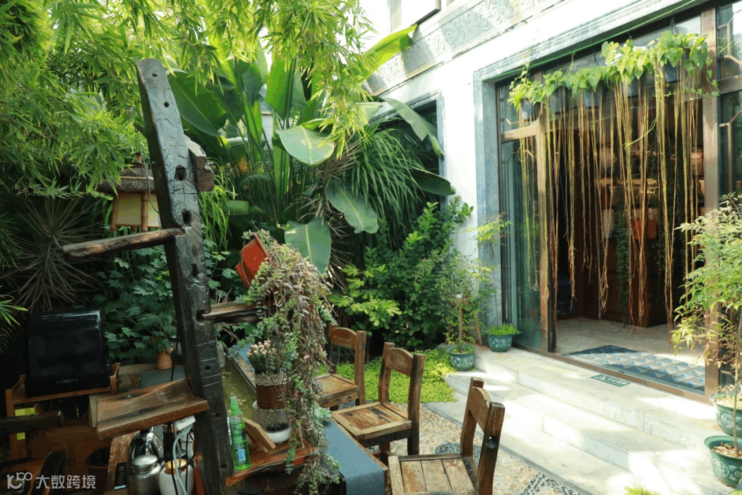 砖墙上的剪纸、大红灯笼与木质桌椅