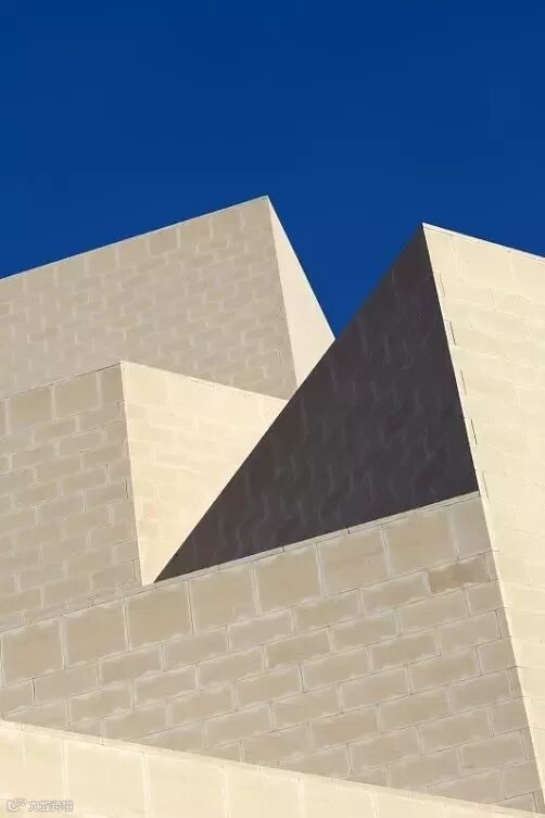 博物馆外墙用白色石灰石堆叠而成,折射在蔚蓝的海面上,形成一种慑人的宏伟力量。
