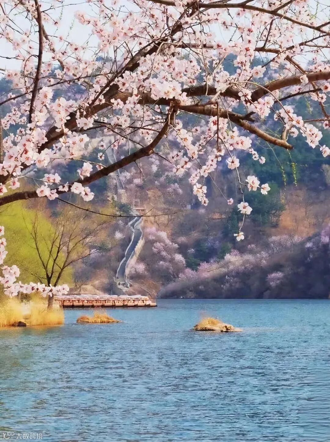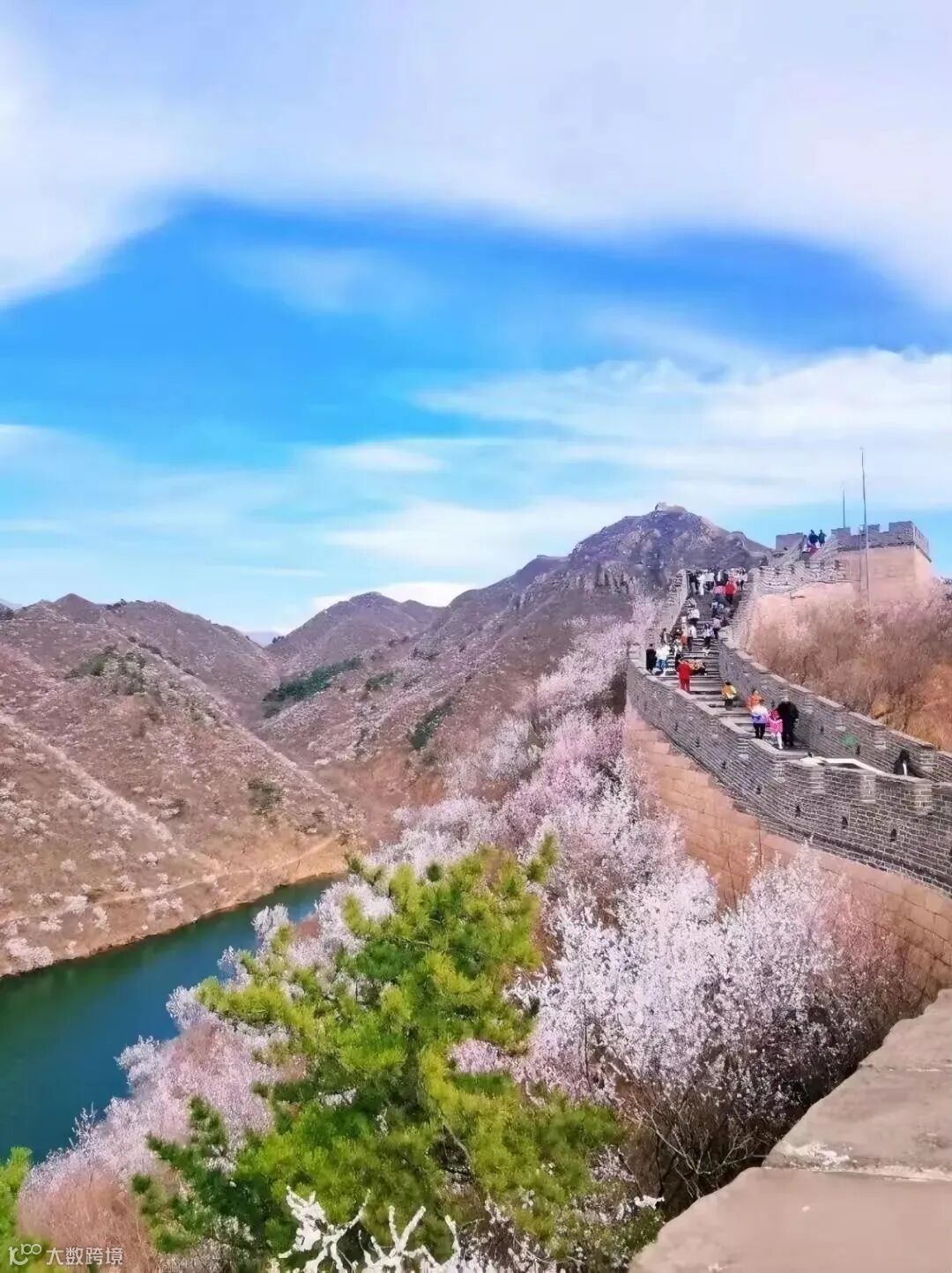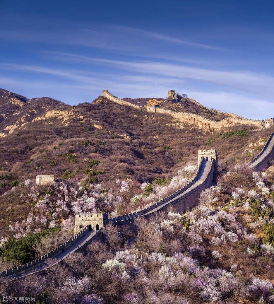 看长城蜿蜒,春花遍野