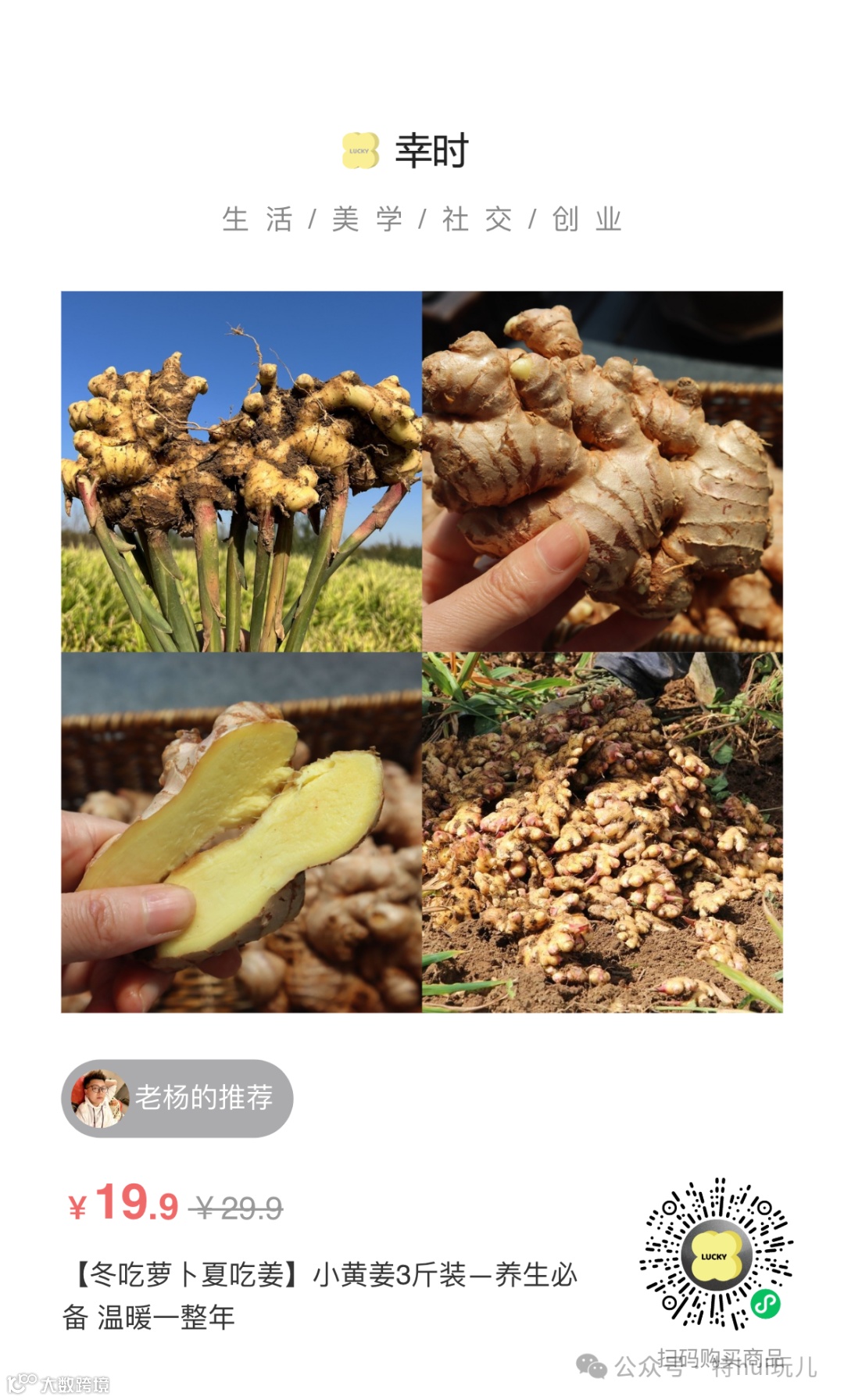 19.9元 限时抢购:【冬吃萝卜夏吃姜】小黄姜3斤装一养生必备 温暖一整年