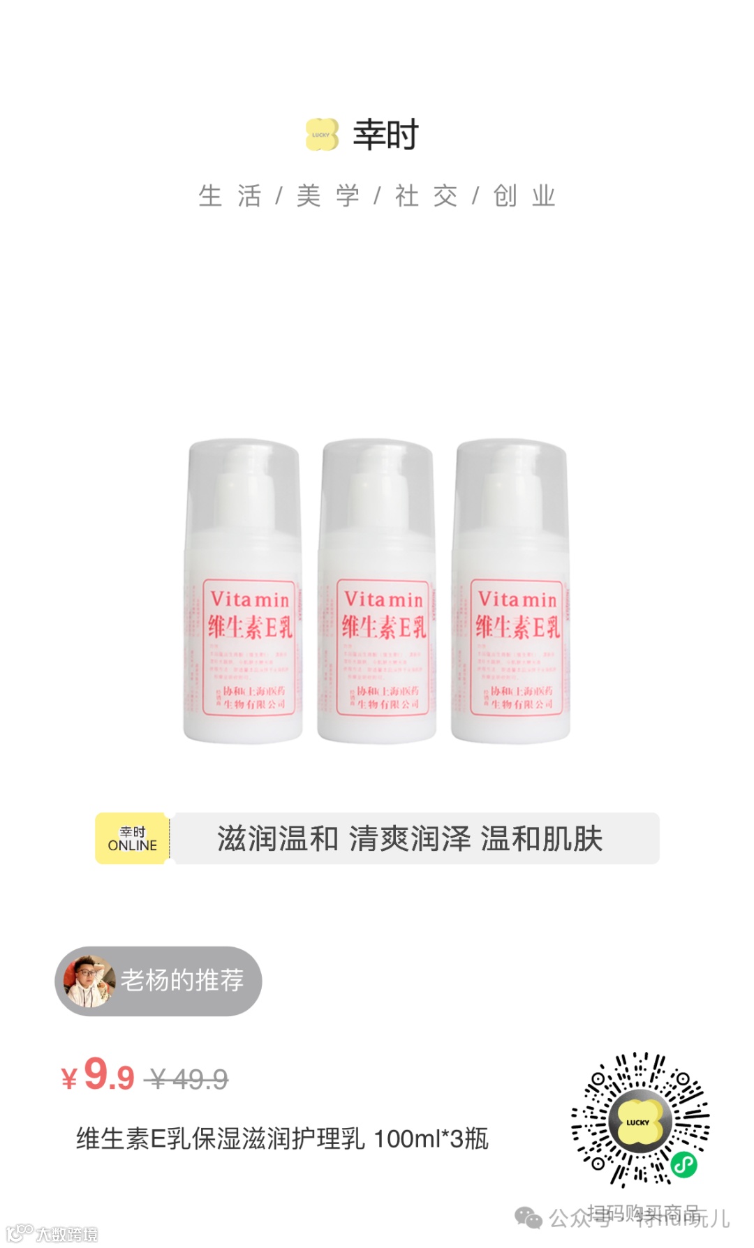 【限时开团价:9.9元】维生素E乳保湿滋润护理乳100ml*3瓶