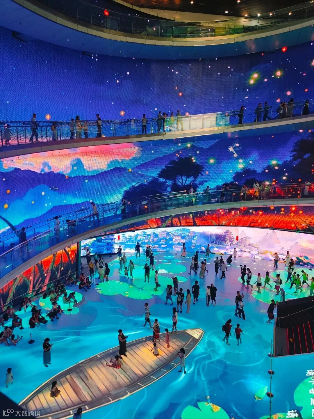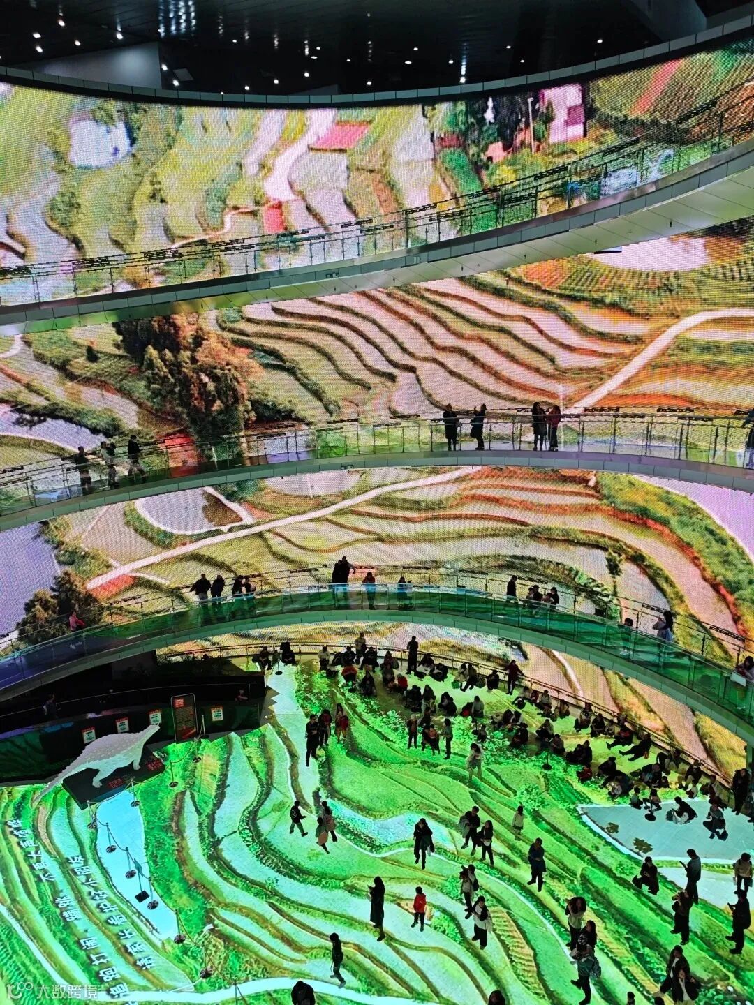 博物馆的中央圆厅已成为网红打卡地,中央环形曲面屏幕利用数字技术呈现出变化无穷的艺术效果,神秘浩瀚的星空、色彩斑斓的海底世界、美丽如画的自然世界……置身其中,仿佛开启了一场打破次元壁的时空之旅。
