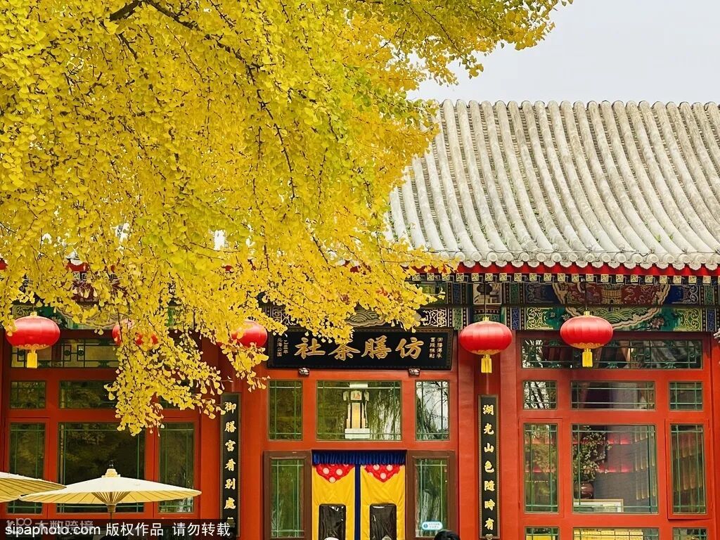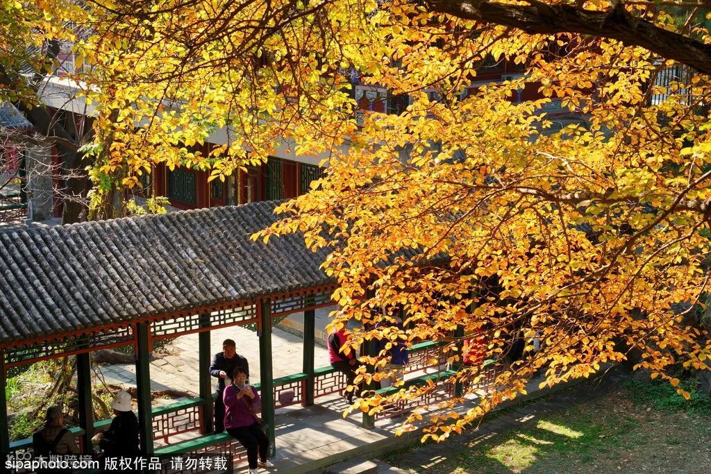 颐和园内的树木换上了金黄的华服