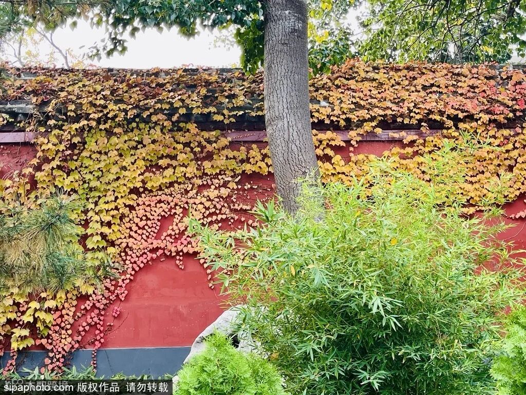 爬山虎红彤彤得一日胜过一日