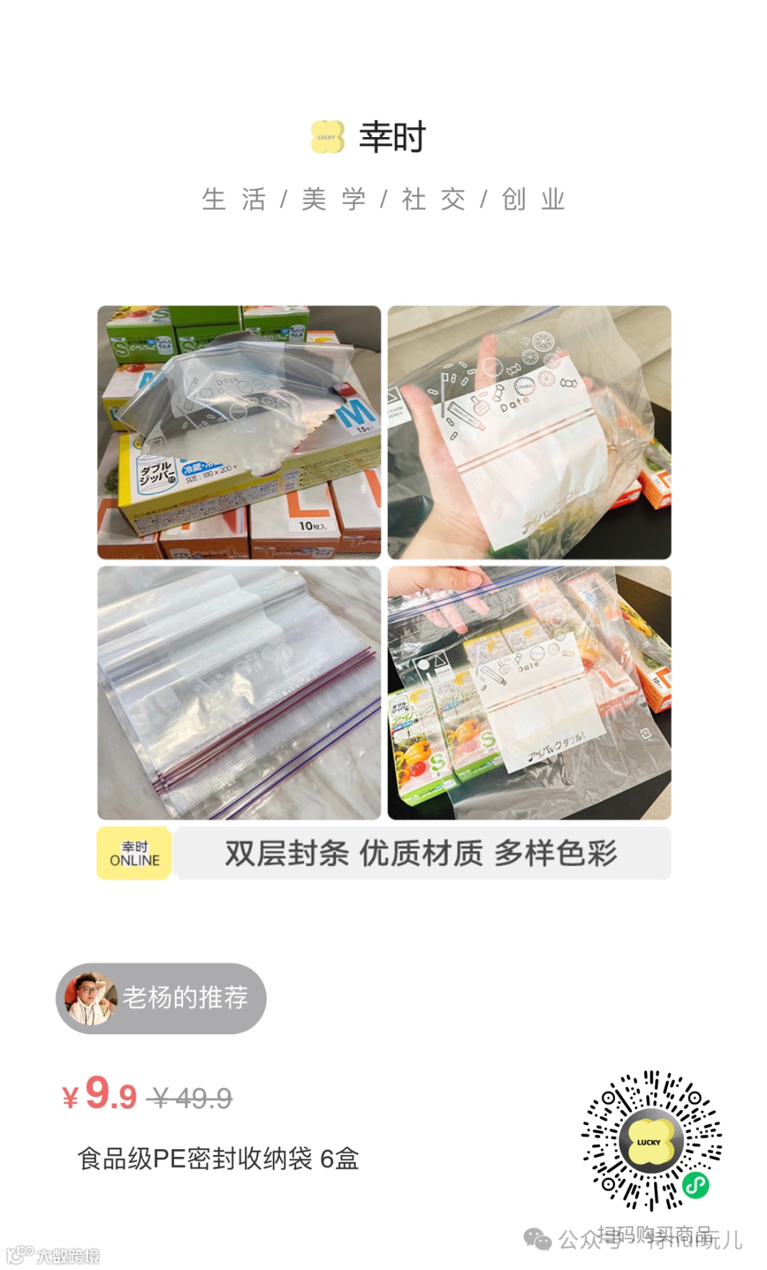 【限时开团价:9.9元】食品级PE密封收纳袋6盒