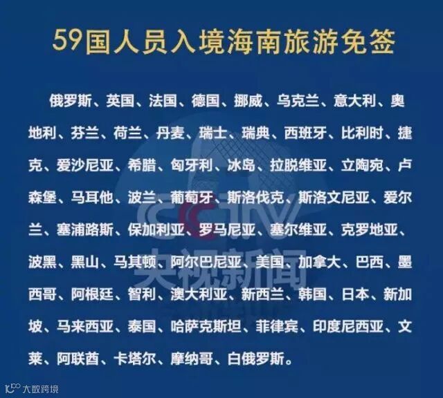 ①「扩大免签国家范围」。适用入境免签政策的国家由26国放宽到59国。