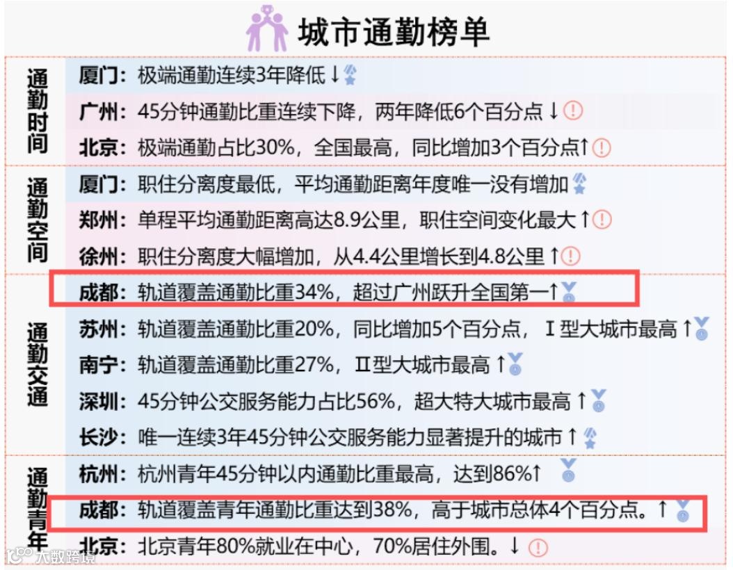 一个有意思的小数据,《2022年度中国主要城市通勤监测报告》显示,2021年,成都轨道覆盖通勤比达到34%,跃升全国第一;而成都轨道覆盖青年通勤比重达到38%,比城市平均水平高出4个百分点,是目前国内城市中的最高水平。成都基础建设充分追上了城市扩张和发展的速度,租房成本变高了?没关系,“贴心”的成都地铁会出手。
