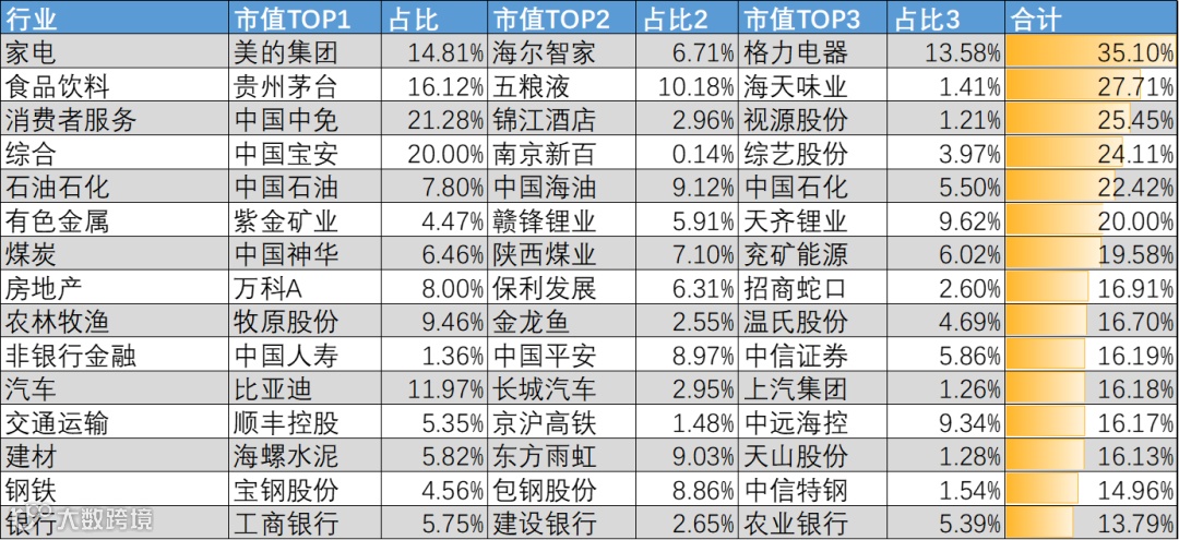 图:各行业龙头成交占比
