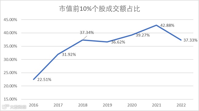 图:A股市值前10%个股成交额占比