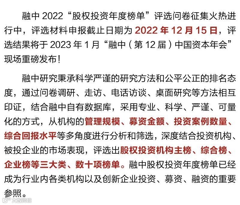 【倒计时10天】融中2022”中国股权投资年度榜单“征集进行时