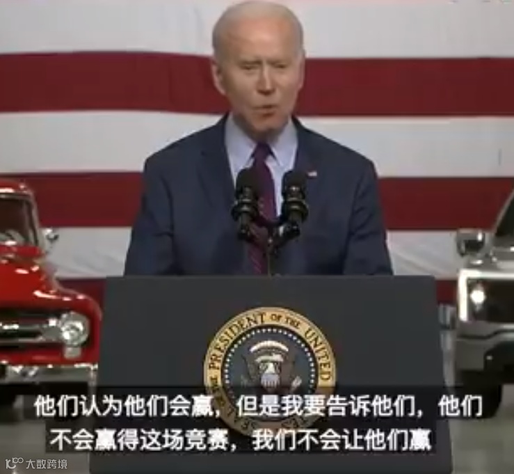 一年前,拜登就曾为福特一款电动车站台,并对着镜头说:“中国在电动车竞争中暂时领先,他们制造了全球80%的动力电池,还在德国和墨西哥生产,然后出口到全世界,但我们绝不会让中国赢。”