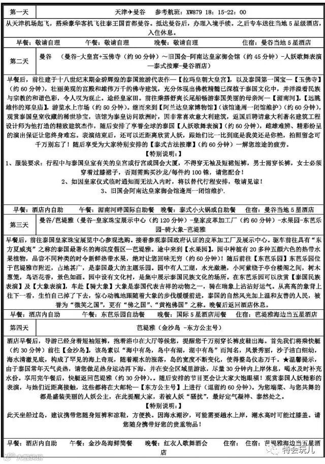 泰国行程所列星级酒店住宿;