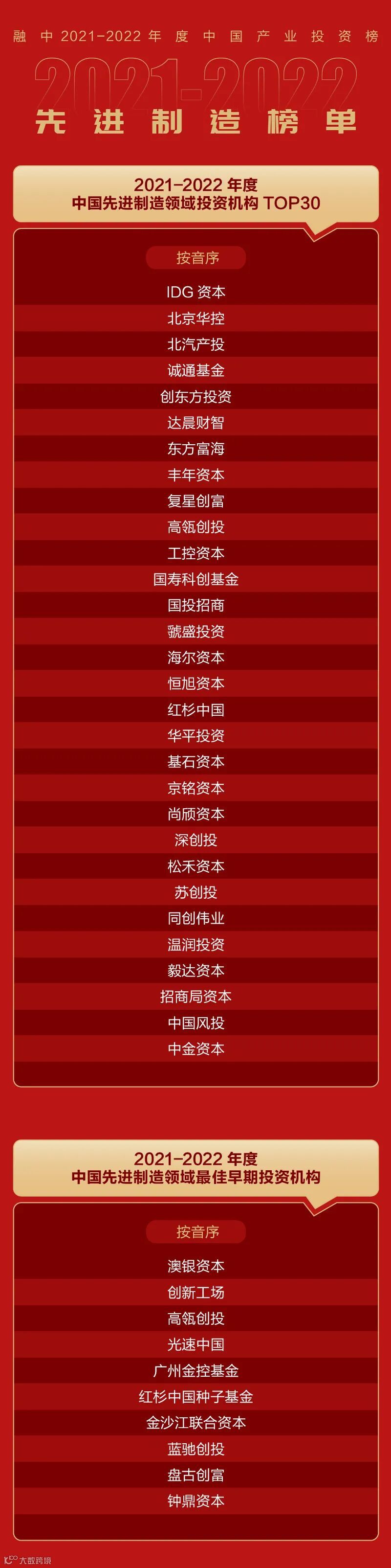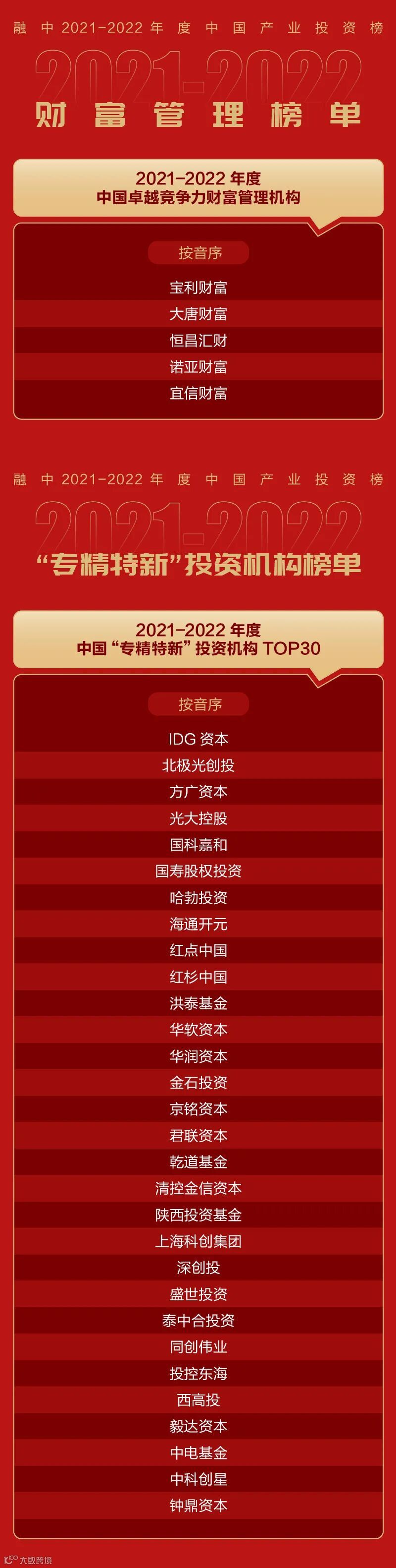 【重磅】融中2021-2022年度中国产业投资榜正式发布