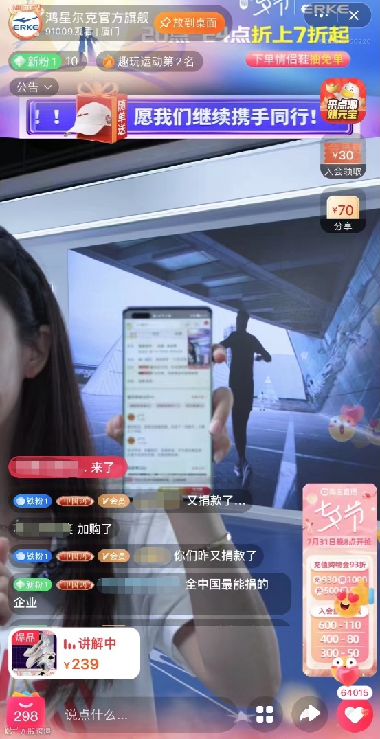 网友们也不只是说说而已,基金君去鸿星尔克直播间看到不少人留言称,“刚看到你们又捐款了,已加购。”