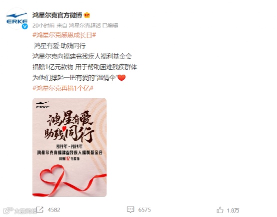 鸿星尔克再捐1个亿!