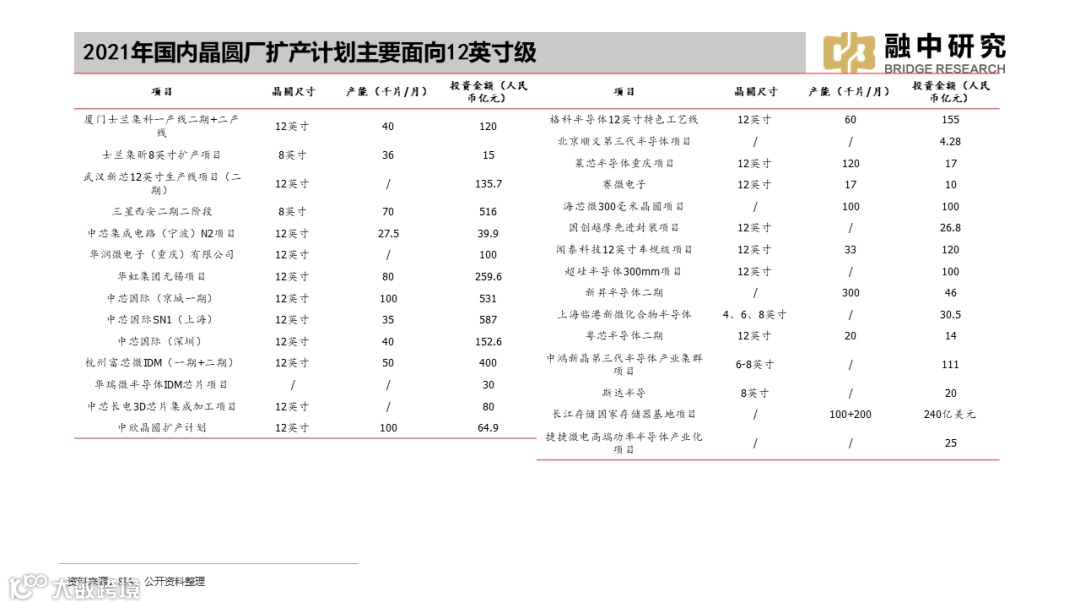 晶圆制造重心会转移到中国大陆。尽管目前中国大陆在半导体产业链核心技术尚未实现本土化,但是中国拥有市场优势,在中国建厂可以实现风险分散。全球IDM公司及晶圆制造代工厂开始在中国投资建厂。