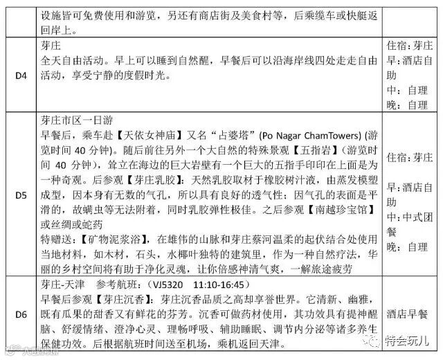 2:行程内所列餐食4早2正(早餐酒店安排越南及西式自助餐,团体午晚餐,正餐40元/人/餐,十人一桌、八菜一汤),部分特殊餐厅十人一桌、六菜一汤,特色餐除外;
