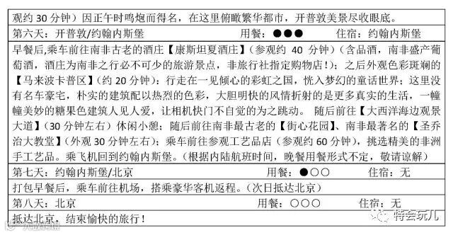 5:西式早餐,中式午晚餐(中式餐6菜1汤,10-12人一桌,如人数减少,则会根据实际人数做适当调整)(因航班时间,用餐时间在飞机上以飞机餐为准,不再另补);
