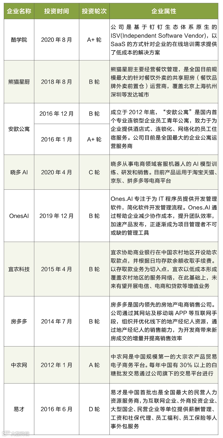表:嘉御企业服务领域的投资案例