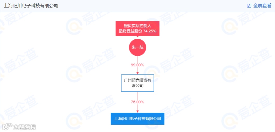 爱企查显示,EDG电竞俱乐部成立于2013年9月13日,旗下拥有英雄联盟、王者荣耀、绝地求生等分部,所属公司是上海阳川电子科技有限公司,股权穿透后,实控人为朱一航,其为合生创展集团实控人朱孟依长子。