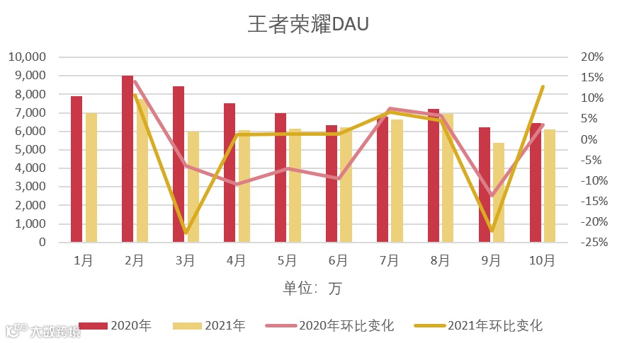 但结合和去年的数据对比一下,会发现未成年用户的影响似乎并没有那么大。去年九月十月也是处于DAU最低值。暑假过后今年的DAU的环比下降达到-16.12%,较去年的-13.5%跌幅大了一些,十月的环比下降几近相同。