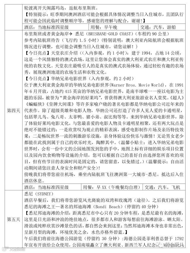 全程为澳大利亚当地标准的4星级酒店或者度假村或者公寓式酒店;早餐在酒店享用西式自助早餐(除早航班酒店提供的早餐盒和公寓式酒店在外面餐厅吃的套餐);