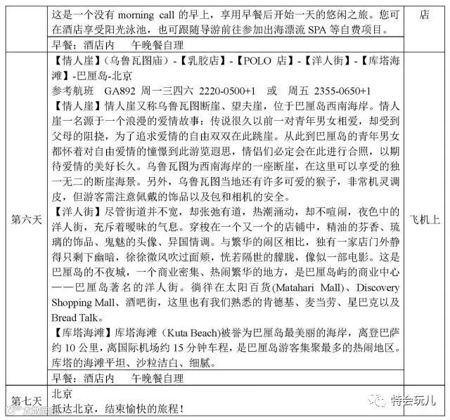 金巴兰海滩、情人崖、乌布皇宫、乌布传统市场、南湾水上活动中心。
