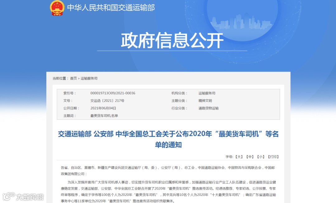 6月4日,交通运输部、公安部、中华全国总工会发出《关于公布2020年“最美货车司机”等名单的通知》,中闽物流槽车驾驶员陈洪琼荣获全国2020年“最美货车司机”称号。