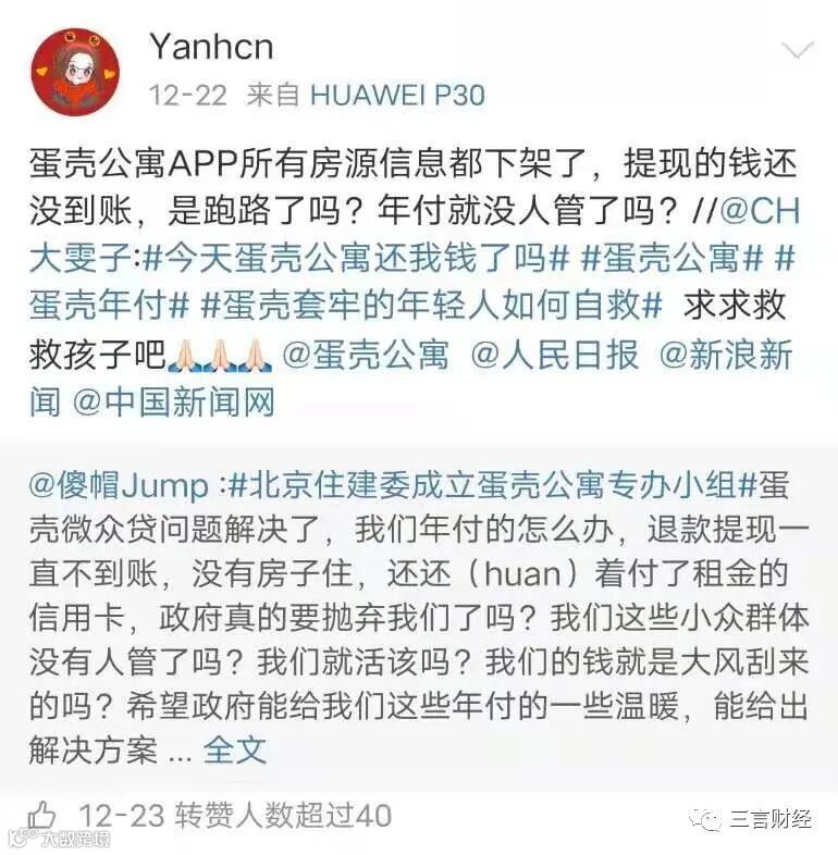 蛋壳悄然下架了所有房源,引发网友质疑,有网友发文称,蛋壳公寓APP所有房源信息都下架了,提现的钱还没到账,是跑路了吗?年付就没人管了吗?