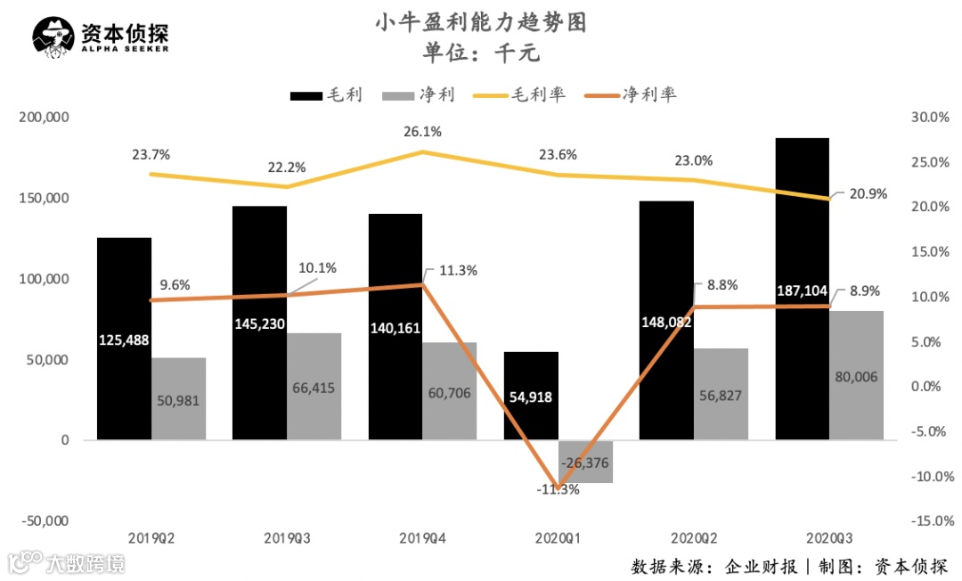 更值得忧虑的是小牛的盈利表现,今年以来,小牛的毛利率、净利率水平普遍不如去年。