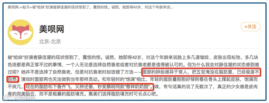 也不能说女明星矫情,还有更惨的,美呗平台官方发帖,来吐槽女星薛佳凝的脸,用词甚至可以说是很恶毒了。