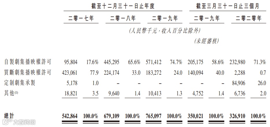 目前,自制剧集是稻草熊影业的主要收入来源。2019年,来自其自制剧集播映权许可的收入占同期公司总收入的74.7%。