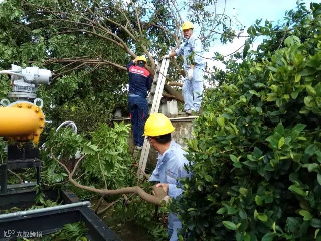 图:珠海天然气员工,合力抗灾移开倒塌的树木