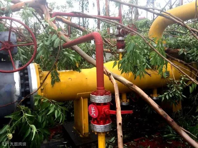 图:台风过境,树木倾倒,压到很多管道、阀门