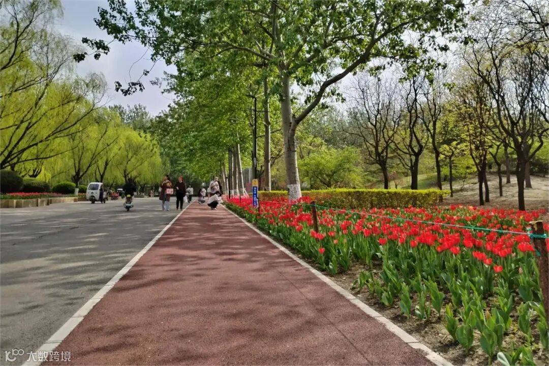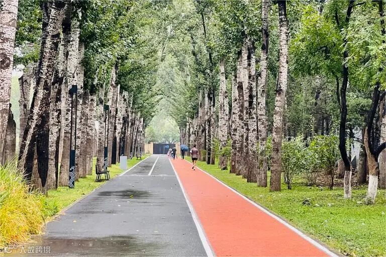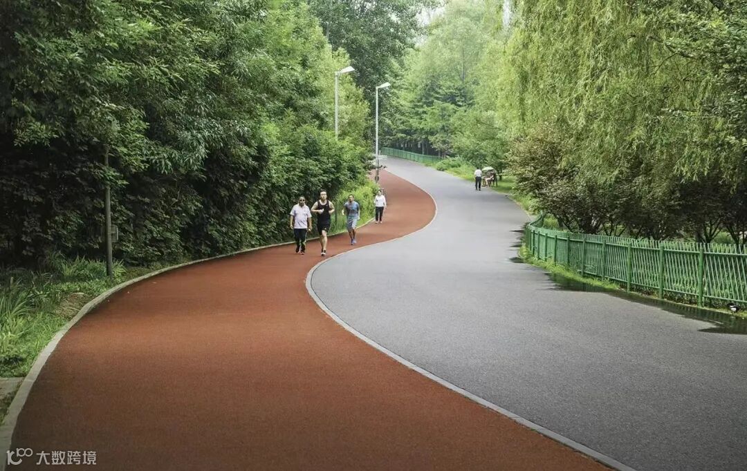朝阳公园靠近北京东四环,绿地占有率高达87%。这里有4种不同长度的跑道,每隔30米设置路灯,地面施划了距离标尺和竞速标识。